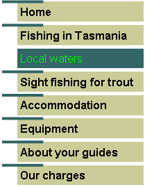 Extending across the centre of Tasmania is a maze of streams and lakes that promise wonderful angling. Some comments about places to which we regularly guide our clients are provided below. We also are experienced in taking hiking trips to remote waters on the Central Plateau that are seldom fished. If you want to back pack to secret favourites such as the tarn pictured opposite, contact us to discuss how we can assist you. |